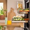 Teleskopické vodidlá s hladkým posunom poskytujú dokonalý prehľad o procese pečenia, ako aj bezpečnejšiu a ľahšiu manipuláciu s plechmi. V závislosti od modelu sú rúry Gorenje OptiBake vybavené ¾ výsuvnými teleskopickými vodidlami na jednej alebo dvoch úrovniach. Ako ďalšiu možnosť ponúkame tiež flexibilné jednoúrovňové teleskopické pojazdy, ktoré je možné jednoducho zacvaknúť na požadovanú úroveň.
