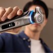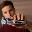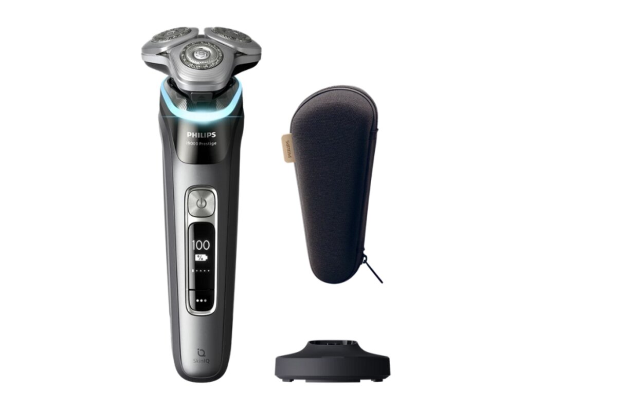 Philips i9000 Prestige s holiacim systémom Triple Action Lift&Cut a kompaktnou hlavou 360° Precision Flexing holí chĺpky na úrovni pokožky, dokonca aj na miestach, ktoré sa ťažko holia. Technológia SkinIQ využíva AI, sníma, vedie a prispôsobuje sa na dosiahnutie inteligentného pohodlia pokožky.